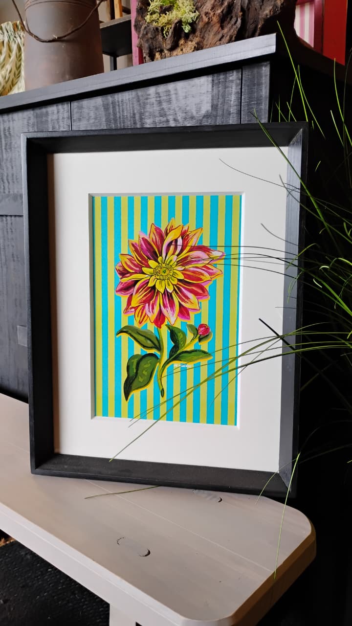 Cuadro flor líneas verde amarillo