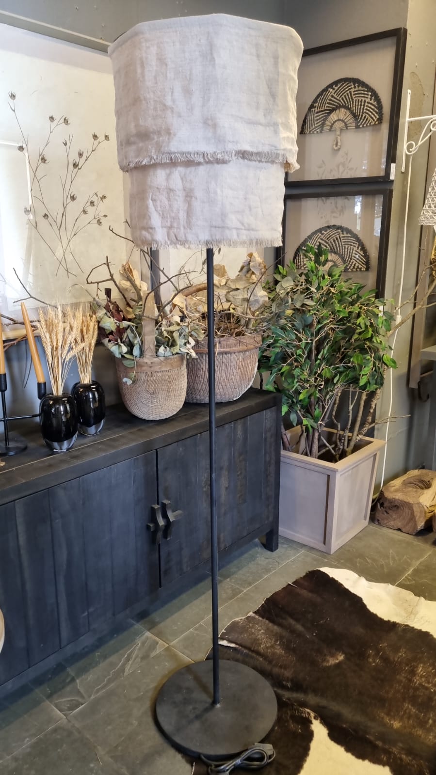 Ilumina y decora tu living o sala de estar con esta lámpara de pie. Añádele un toque natural y texturas suaves gracias a su funda de lino con flecos. fundas lavable