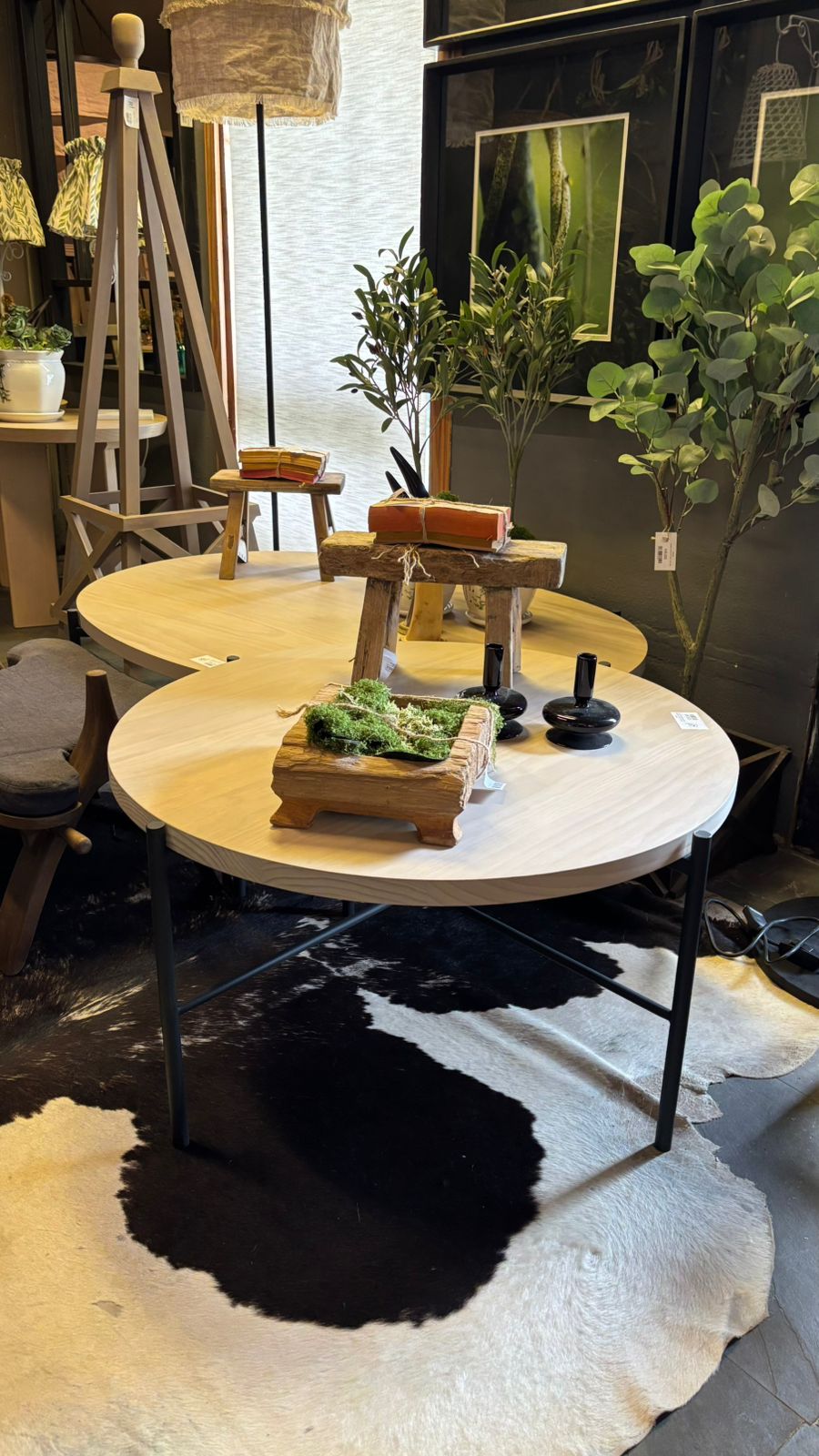 Mesa de centro redonda base fierro 80x42 rústico claro